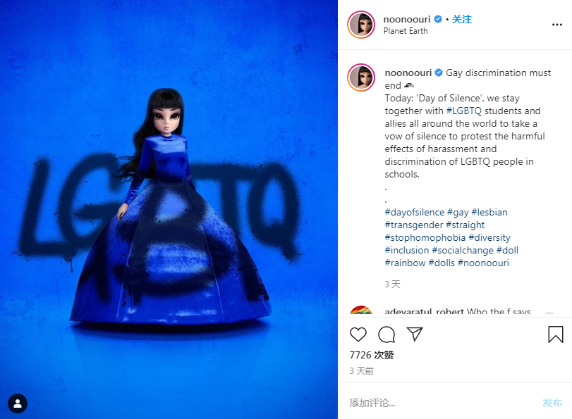 不仅如此,努努还会为LGBTQ少数群体发声、同时也关注疫情期间发生的一切。