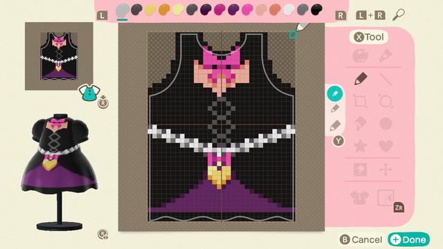 小岛中最值得引起时尚圈注意的,就是中的服装设计系统了。玩家可以直接购买服装店中的现有成衣,也可以在一张张像素格图纸中自行绘制,这也被称作"十字绣设计",其中精确到了前衣片、后衣片,和袖子。
