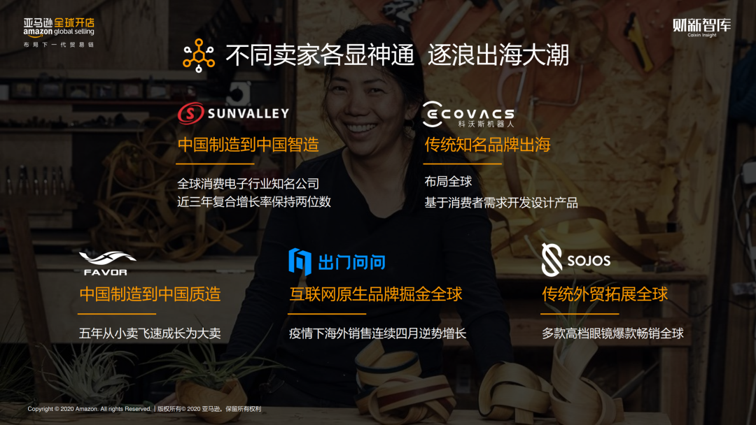 与此同时,卖家的类型也更加多元。过去五年不仅涌现出很多知名的互联网原生品牌,如出门问问、安克等,传统制造企业、传统外贸商、传统知名品牌等也不断加入出口跨境电商行业,开拓新的业务增长机遇,如科沃斯等。