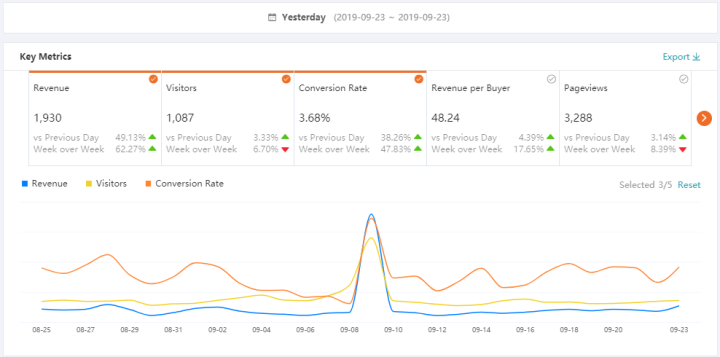 1. Dashboard数据面板: 向您展示店铺总体数据表现,每天9点(东8区时间)进行更新。