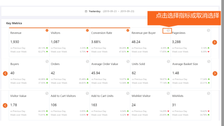 1.通过不同指标查看店铺的总体表现,关注重点改善方面