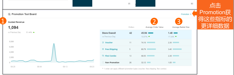 下拉Dashboard页面查看促销工具面板(选定时间内的):