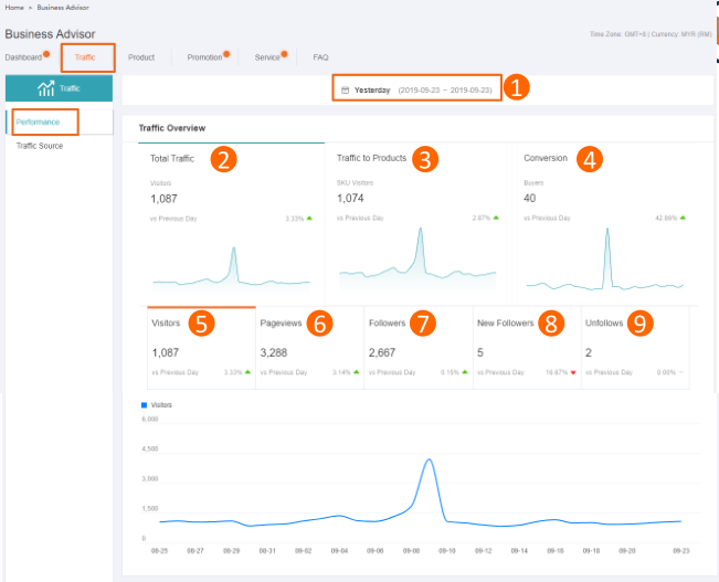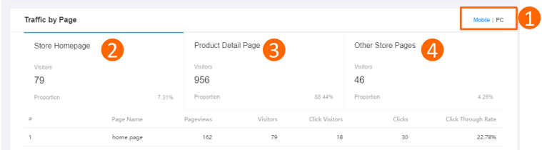 2. Total Traffic:浏览过您店铺的客户数量(包括店铺和所有产品页面)