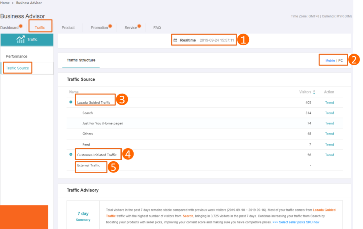 5. External Traffic: 来自Lazada外部的流量,例如社交媒体,其他网站和搜索引擎。 小提示:您可在社交媒体或其他网站上推广您的商店,并使用搜索引擎优化来吸引客户(外部流量数据正在创建中,即将发布)