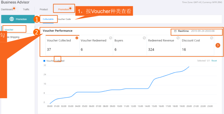 *鼠标悬浮在每个指标上方可查看该指标的解释Voucher Collected(已被领取的优惠券数量)