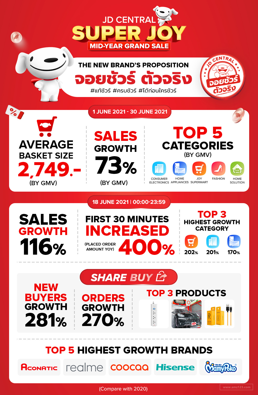 7月20日京东泰国首席营销官Korlab Suwatcharangkun表示,由于疫情原因,消费者避免外出,在极爱工作,因此京东泰国的年终促销活动十分火爆。6月1日至30日期间,平台销售额增长高达73%,每笔交易的平均消费额为2749泰铢,其中最受欢迎的5个产品类别是电子产品、时尚产品、家居电器、快消品、家庭工具。