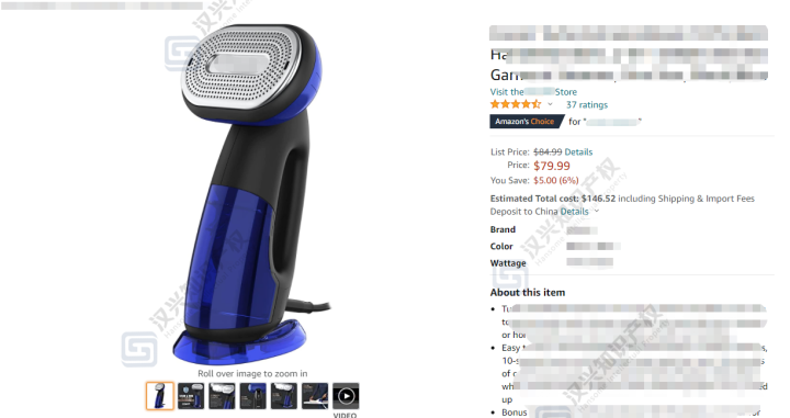 下面这款挂烫机,目前是亚马逊美国站的Amazon'sChoice,现有留评数37,售价为79.99美金: