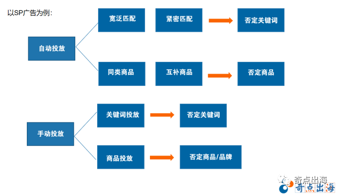 否定投放有两种方式,分别是否定商品定向和否定关键词。