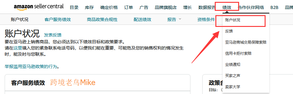 1、打开后台的"绩效"中的"账户状况";