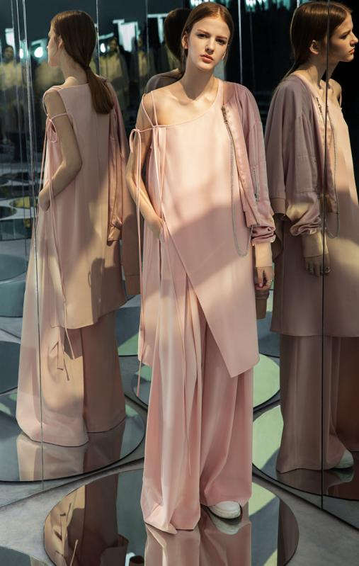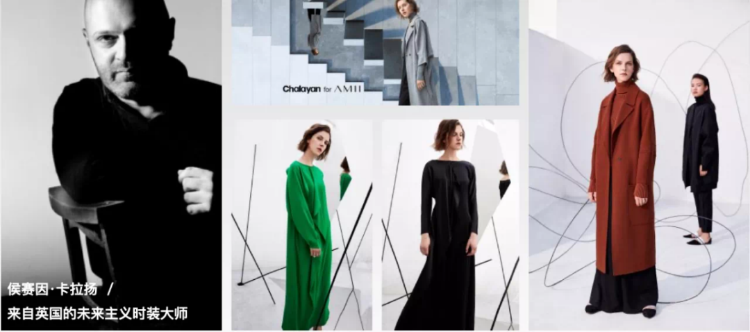 实际上,Amii在更早之前就已经谋划布局海外市场了。2017秋冬,Amii联合英国传奇时装设计师侯赛因·卡拉扬(Hussein Chalayan)推出了联名系列Chalayan for Amii。延续了Amii一贯极简风格,同时加入了更多生动色彩和玩趣的设计,重新为品牌定义了新的价值主张——"有趣的极简"。