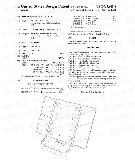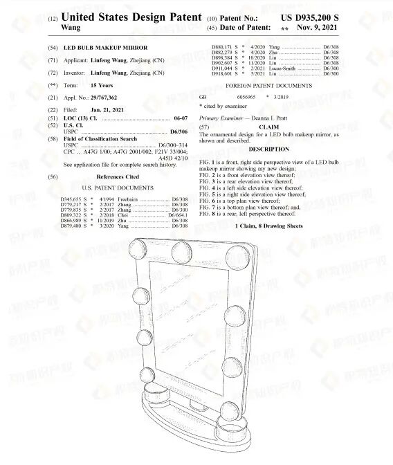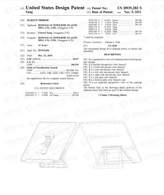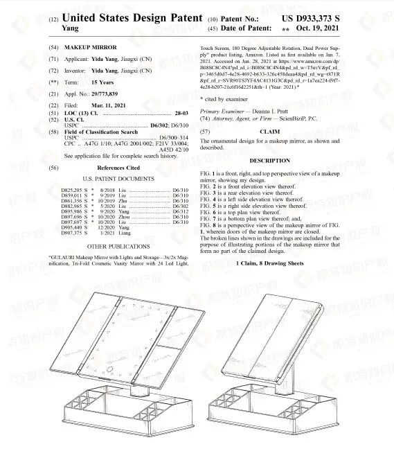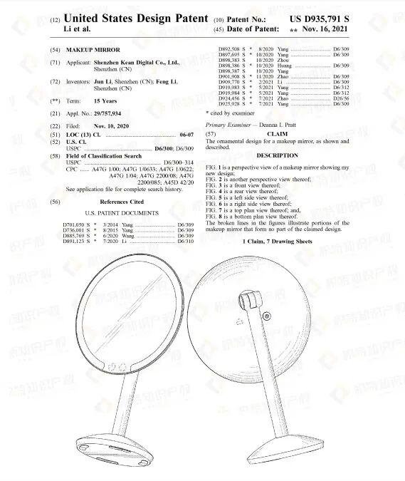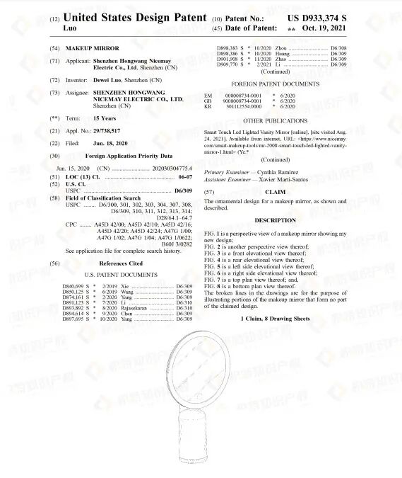 检索发现,化妆镜的外观专利很多,且不少是近期获得授权的,维权概率较高,卖家要多加留意。