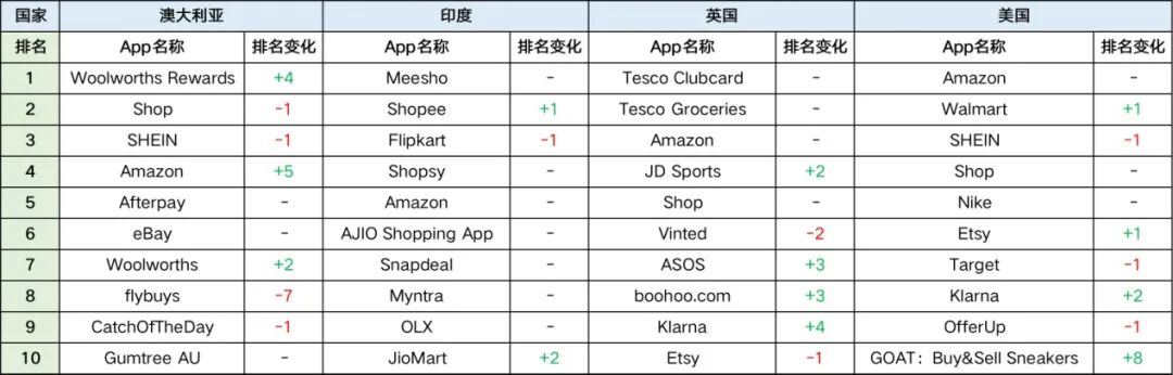 根据排名可以发现,四大市场中的头部电商 App 也不尽相同。印度市场中「Meesho」稳居榜首,证明了社交电商在印度市场的广泛空间。相比之下,英国 iOS 和 Google Play 下载量最高的购物 App 分别是大型零售商乐购旗下的「Tesco Clubcard」和「Tesco Groceries」,第三/四名分别是「Amazon」和运动............. 原文转载:http://fashion.shaoqun.com/a/645985.html 跨境电商:https://www.ikjzd.com/ 跨境电商教程:http://www.kjdsnews.com