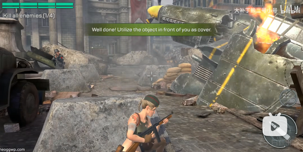 而在《kiss of war》这款游戏中,虽然核心玩法依然是 SLG 游戏的建造、战斗等,但是在此基础上《kiss of war》还加入了射击类游戏的玩法。在进入战斗之后,画面由竖屏切换成了横屏,玩家需要操纵人物去用枪射击敌人。在《kiss of war》中,射击战斗胜利的话可以获得相应的资源奖励。