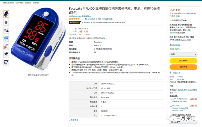 这是亚马逊上卖的非常好的一款脉搏血氧仪,价格不贵,一共累计了将近40000条评价,可以说是当之无愧的爆品了。
