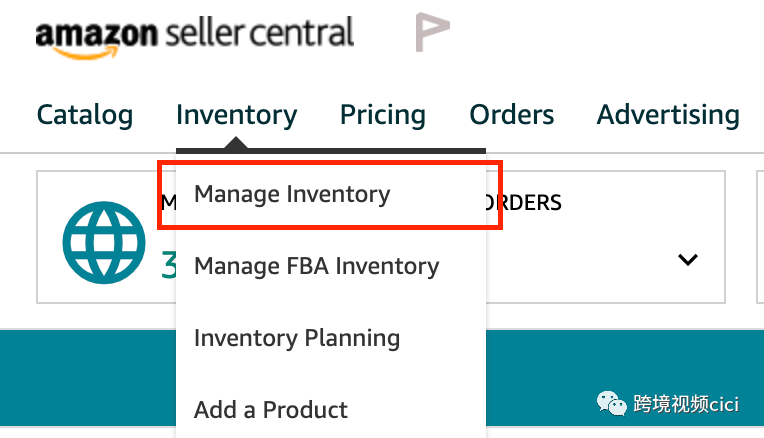 要确定是否有滞留库存,请转到卖家中心并将鼠标悬停在"库存"上。从那里,选择"管理库存"。