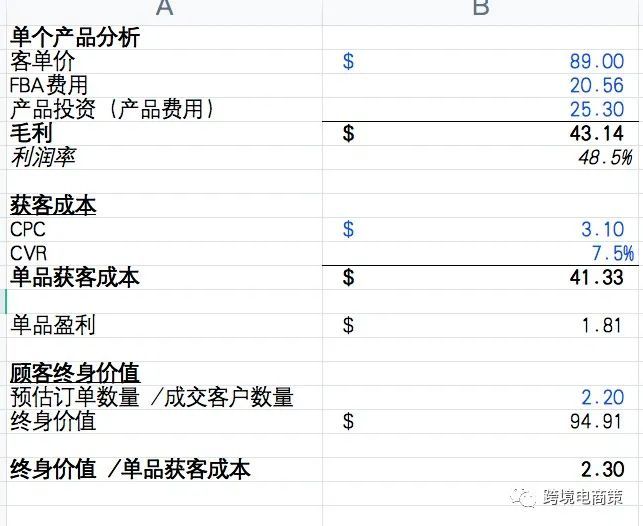 我整理了两个表格,第一个是比较基础的 主要是通过几个基础数据 来判断 该产品的顾客终身价值 LTV , 我为什么要提这个问题呢?
