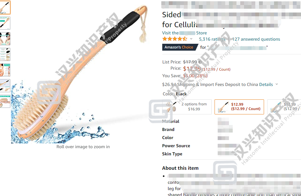 下面这款沐浴刷,目前是亚马逊美国站的 Amazon'sChoice,现有留评数高达5,316,售价为12.99美金: