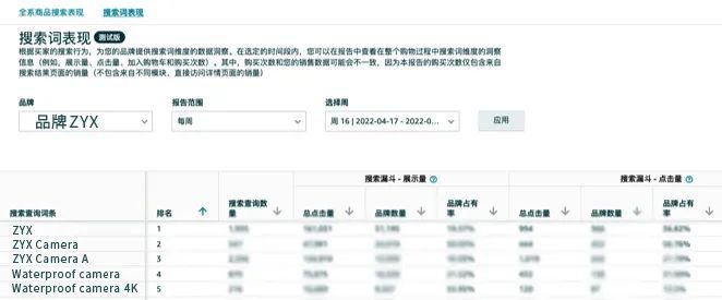根据亚马逊品牌分析工具的搜索词表现报告(search query performance)分析,和ZYX品牌高度相关的搜索词是:防水及4K。