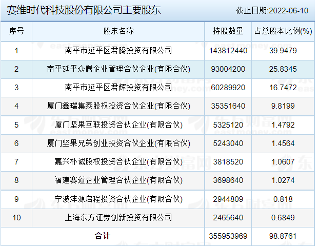 赛维时代科技股份有限公司主要股东: