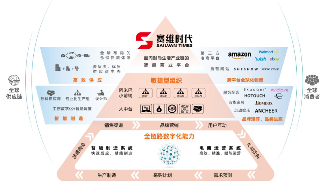 赛维时代是一家技术驱动的出口跨境品牌电商,通过平台化快速反应能力满足全球消费者高品质、个性化的时尚生活需求。自成立以来,公司秉持"让美好生活触手可及"的使命,以全链路数字化能力和敏捷型组织为基石,逐步构建集产品开发设计、品牌孵化及运营、供应链整合等于一体的全链条品牌运营模式。
