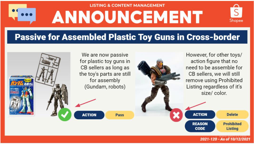 关于带有枪支玩具需要组装的都能上架,完整带有枪支玩具不能上架