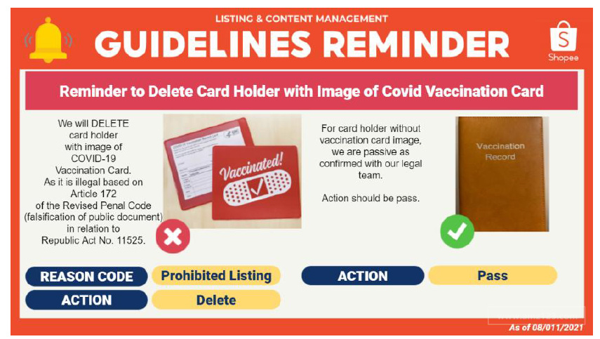 卖家也不能上传卡夹附有Covid 19 的疫苗卡图片