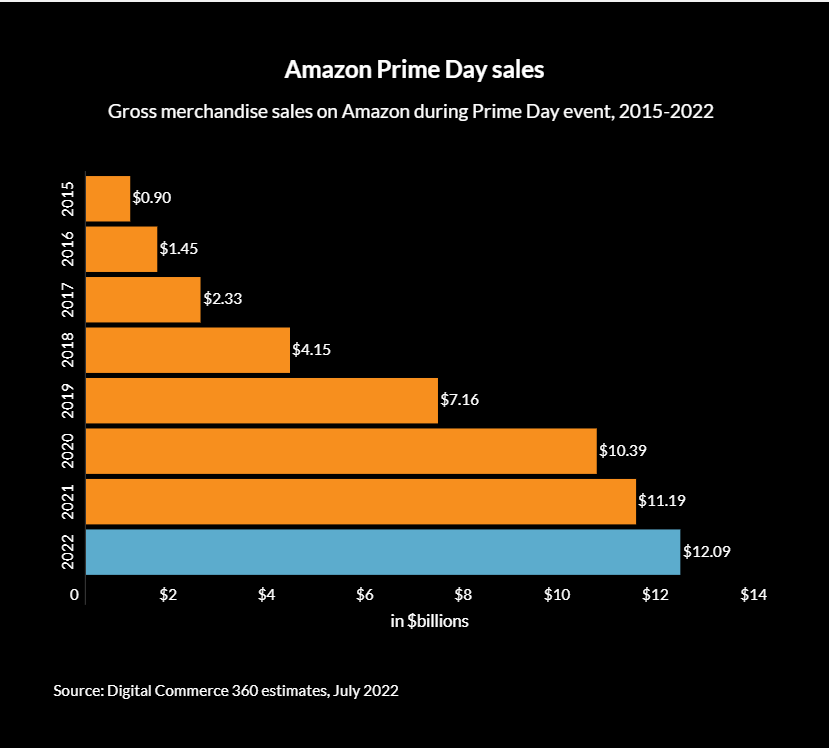 根据Adobe数据,亚马逊Prime Day 购物活动期间美国在线销售额比去年增长8.5%,接近120亿美元。亚马逊周四表示,7月12日至13日为期两天的购物活动是有史以来规模最大的全球购物活动,其Prime会员购买了超过3亿件商品,几乎每分钟购买10万件产品。