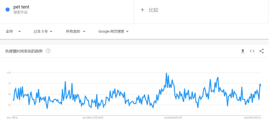 除了家人朋友,宠物也成为越来越多人选择的露营伴侣。据数据显示,约54%的宠物主人计划在2022年带宠物出行或露营,38%的露营者在寻找允许携带宠物的露营地。因此,宠物露营帐篷是一个值得探索的开发方向。