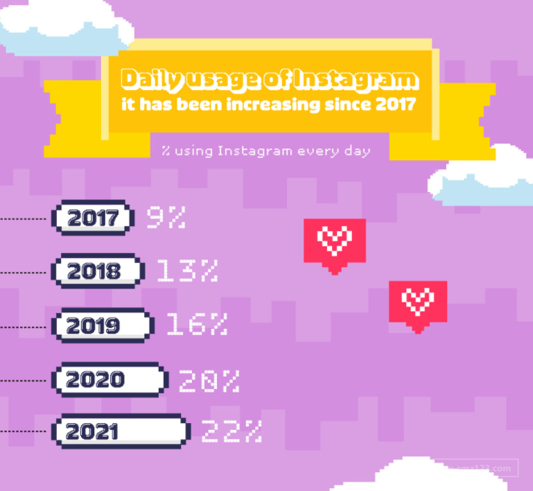 以下是自2017年以来每日使用Instagram的人数递增趋势:
