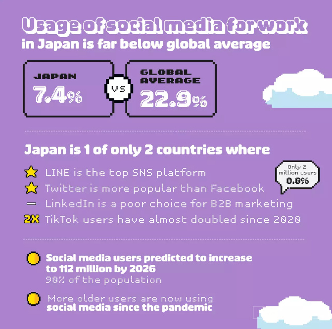 日本是Twitter仅次于美国的第二大市场,甚至比Facebook还要受欢迎(这与全球趋势背道而驰)。造成这种情况的原因有几个: