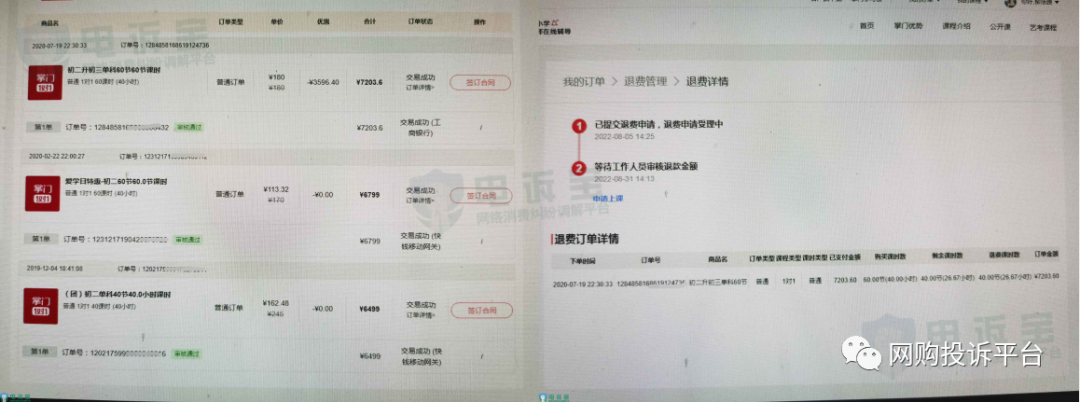10月14日,浙江省的柳先生向"电诉宝"投诉称自己于2019年至2020年之间给孩子购买了掌门一对一在线辅导功课共3次,分别是6499元、6799元、7203.6元,共计2万多元。![]()