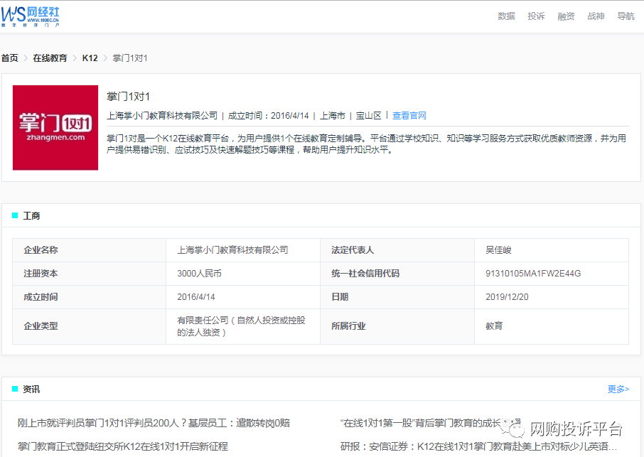 据网经社企业库(COP.100EC.CN)显示,"掌门1对1"隶属于上海掌小门教育科技有限公司,法定代表人吴佳峻,是一个K12在线教育平台,为用户提供在线1对1定制辅导服务。平台通过学校、学历等筛选方式获取优质教师资源,并为用户提供易错陷阱辨析、应试技巧学习及快速解题技巧等课程,帮助用户提升知识水平。