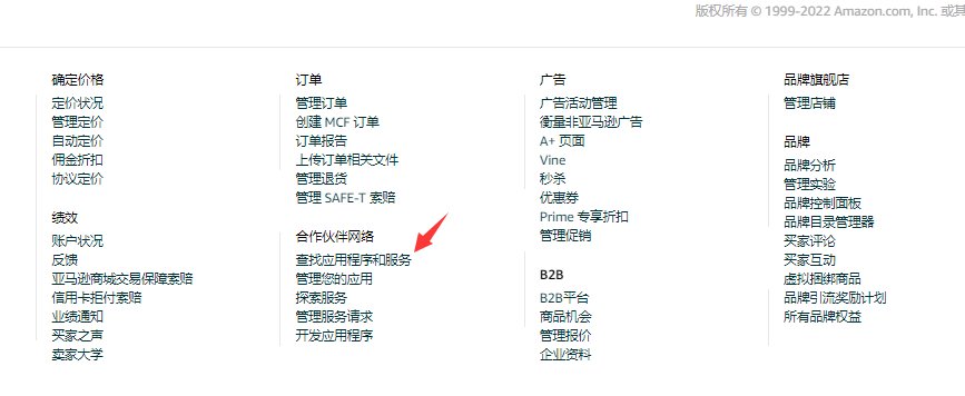 打开亚马逊后台主页面,查找"应用程序和服务"