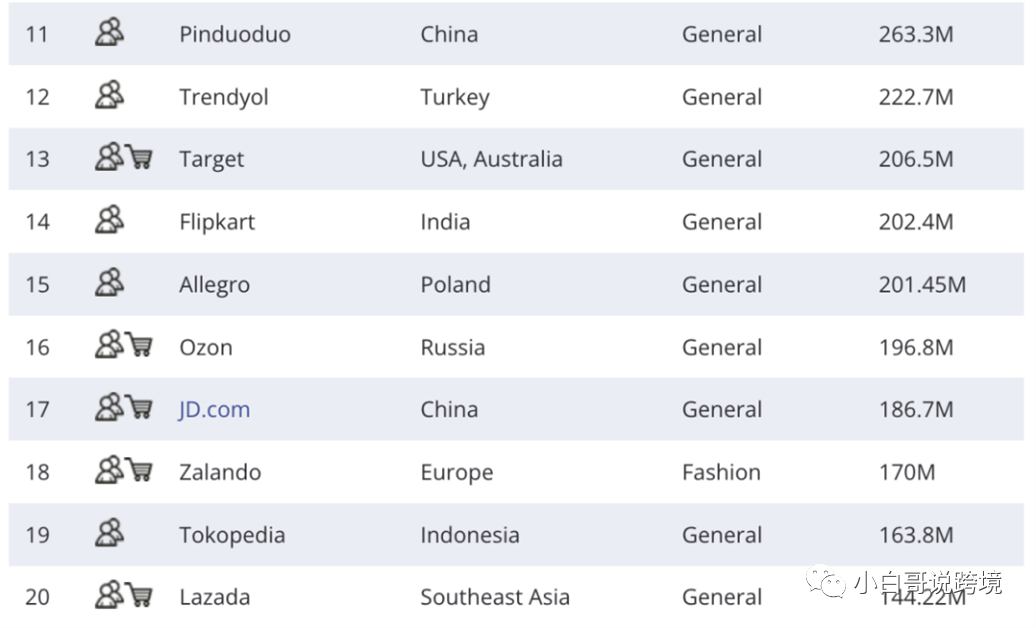 根据SimilarWeb 2022年7月的电商平台访问量数据,Webretailer编制了一份2022年全球电商平台最新排名,并揭示了全球主要电商市场和品类的电商平台访问数据。