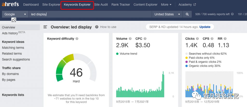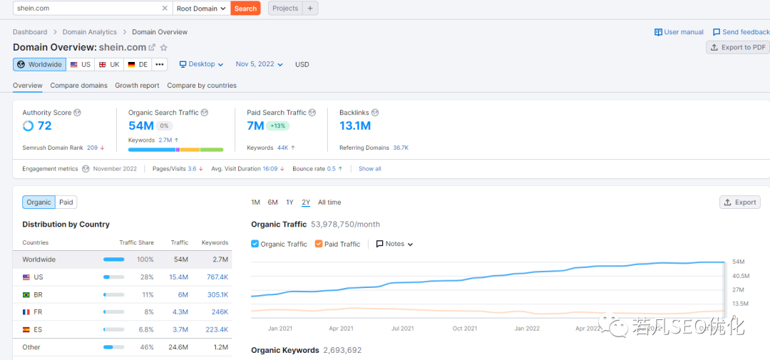 推荐理由:一款非常全面的数字营销工具,目前还可以以低价格团购,调研竞争对手的必神器。这是我平日里使用的最多的一款工具,性价比超高,功能齐全,如果说做SEO只能选一款付费工具,那非它莫属。