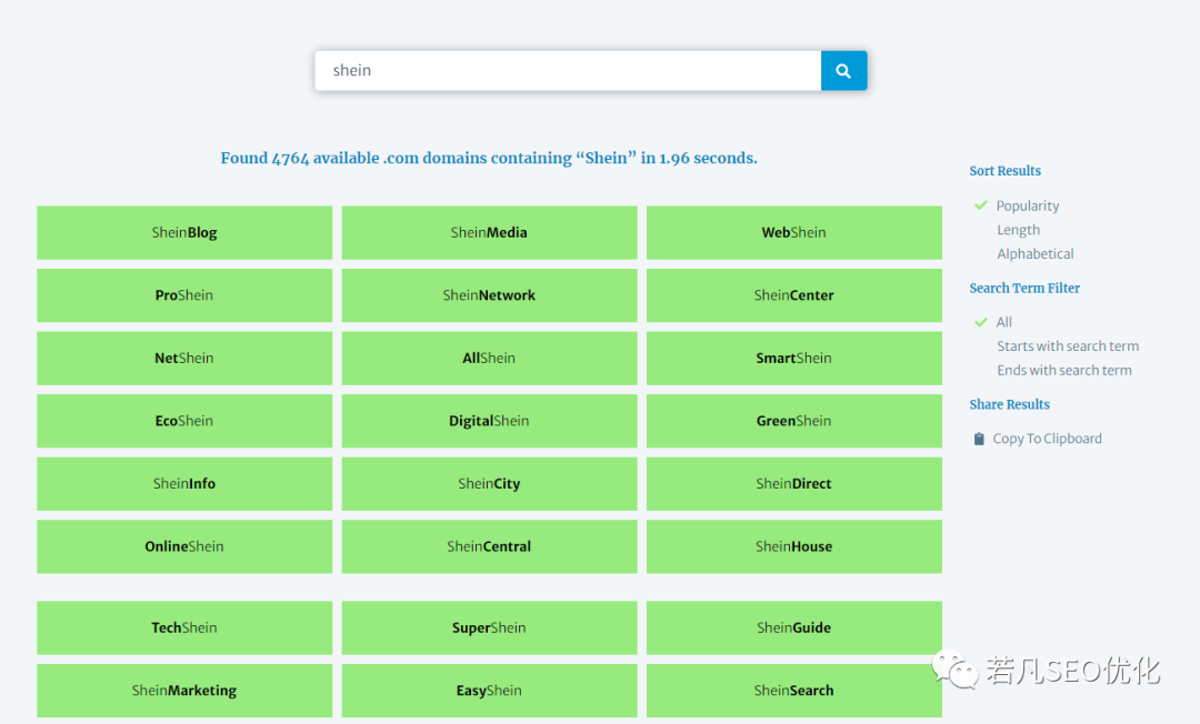 推荐理由:你想注册的域名都被别人注册的时候,它可以帮你拓展出很多你想象不到并且没有被注册的域名,只需要你把域名的相关字符输入进去,操作简单。