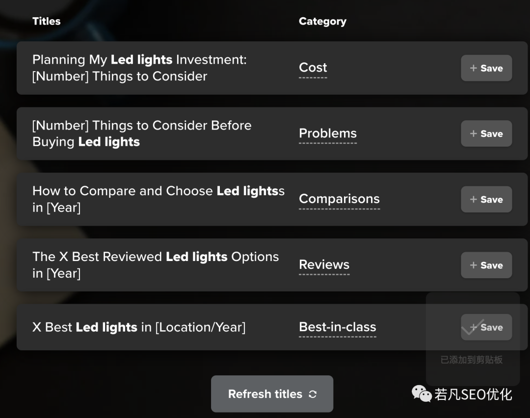 使用功能:用于延展话题,选择话题,给出标题的建议
