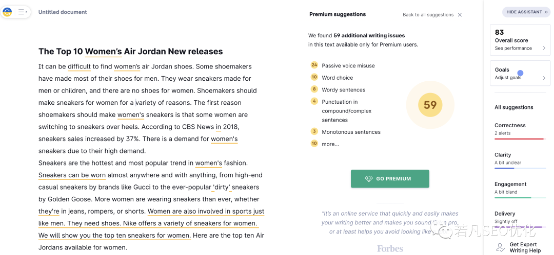 推荐理由:操作简单,直接把文章复制到网站,它能够帮你检查并且手动修改语法。