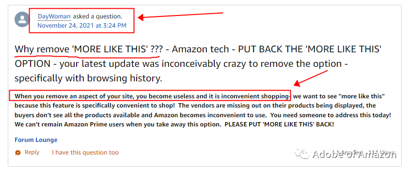 今天"More Like This"展示方式可能和2021年买家说的有区别,但个人觉得算法推荐上面应该是大同小异