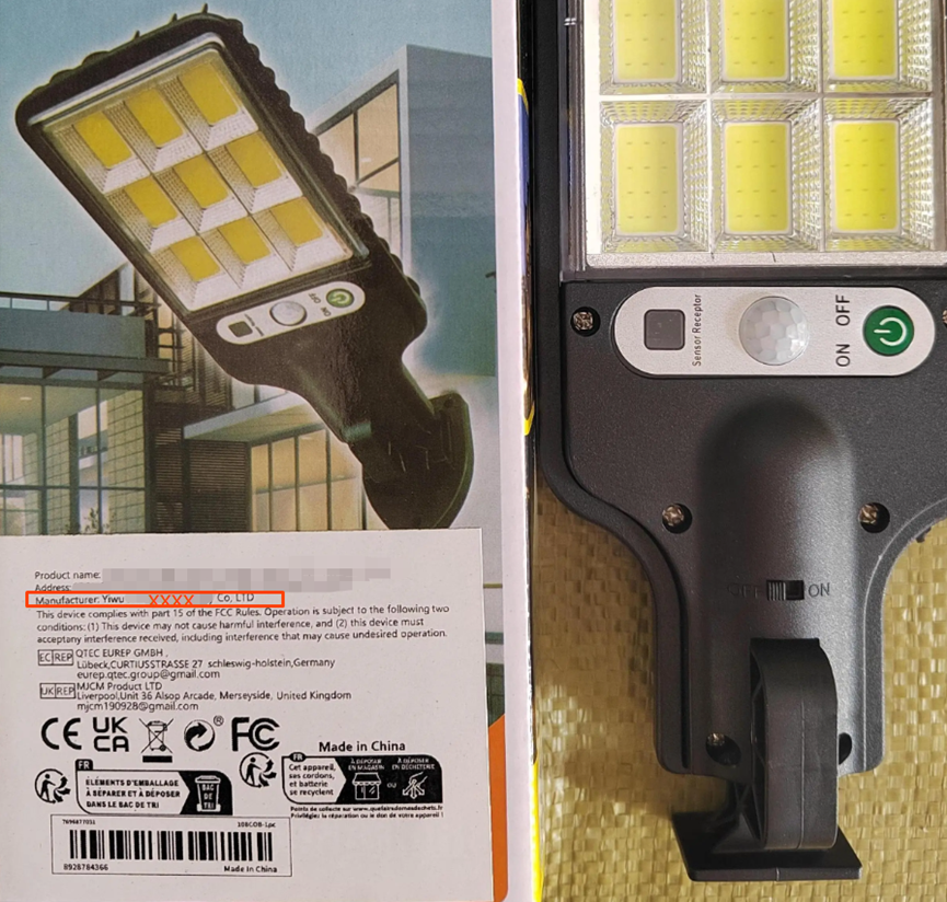 【解读】商品实物图与实际发货商品生产商不一致。资质上传的实物图中Manufacturer : Yiwu xxx ,实际发货发图Manufacturer :Ningbo xxx。