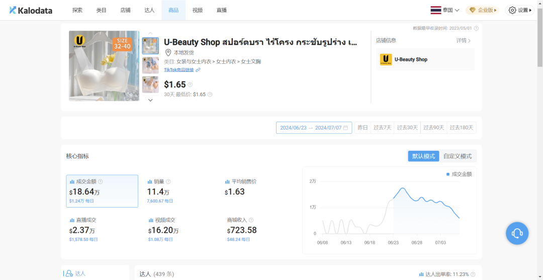 1.TikTok泰国无钢圈文胸热销,15天售出11.4万件