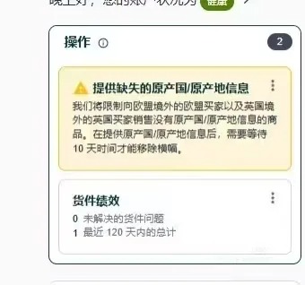 具体来看,卖家在补充原产国/原产地信息后,需等待10个自然日,相关合规提醒横幅才会被移除。若逾期未更新,商品将被标记为不合规,账号可能收到限制警告,严重时甚至存在冻结风险。