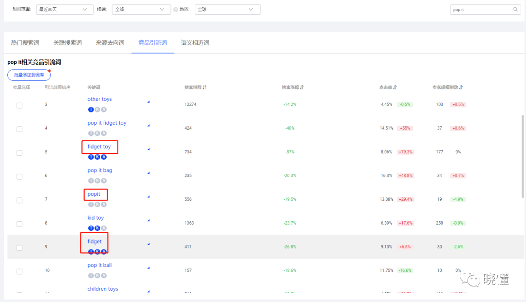 有很多人搜索习惯大多都比较随性,追求简单,快速,很多时候使用关键词是错误的。比如双拼写的字母会只留下一个,哑铃正确的单词是Dumbbell,但是也有很大一部分人搜索时候用Dumbell。词组变成一个单词来搜索,比如灭鼠先锋正常的单子是Pop it,也有很大一部分人搜索用Popit。还有很多例子,这边就不一一介绍了。很多词大家可以尝试着用一些容易错的词去搜索下,说不定就能发现,使用这类词的商家往往相对常见的品类关键词会少很多,往往能让商家更低或者免费的方式获得这部分客户的流量。