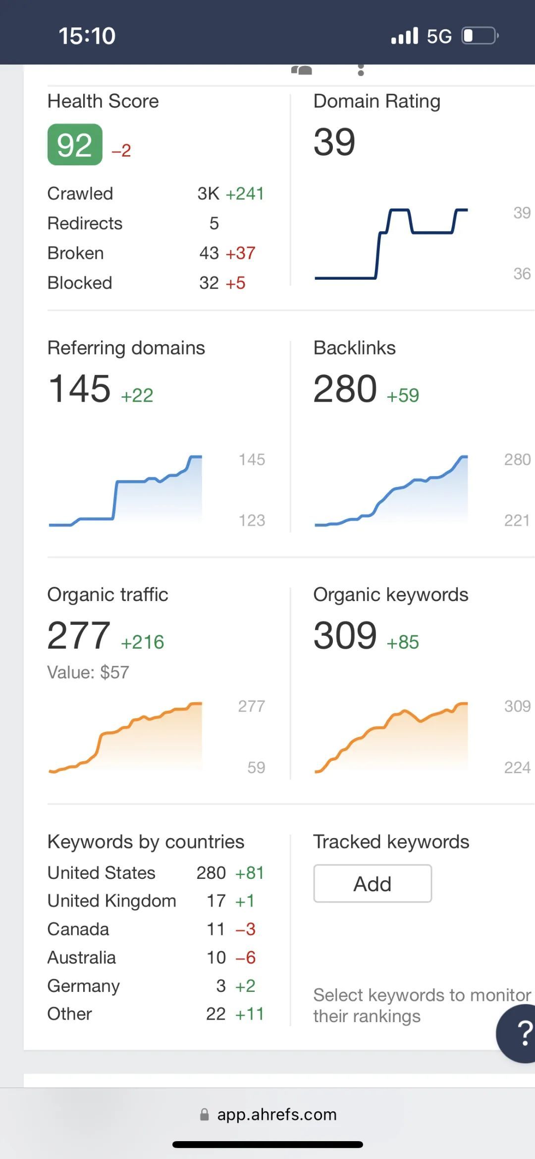 orgnaic traffic 现在是277,这周流量增长速度并未达到预期。