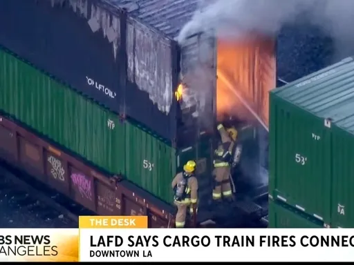 同一区域Mission路500号联合太平洋铁路货场内,双层堆叠列车的顶层集装箱突然起火。因起火点位于高处,消防无法直接扑救,只能调来巨型起重机,将燃烧的集装箱吊至地面后才彻底灭火,货物几乎全毁。